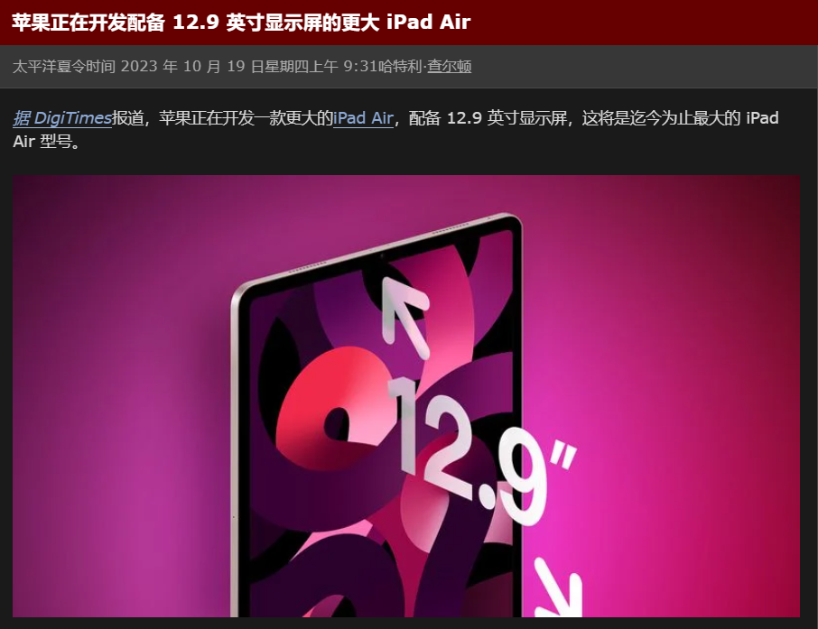 iPad Air 6将新增12.9英寸版本,但是与12.9英寸iPad Pro不同,12.9 英寸 iPad Air 采用与当前10.9英寸iPad Air相同的LCD技术。