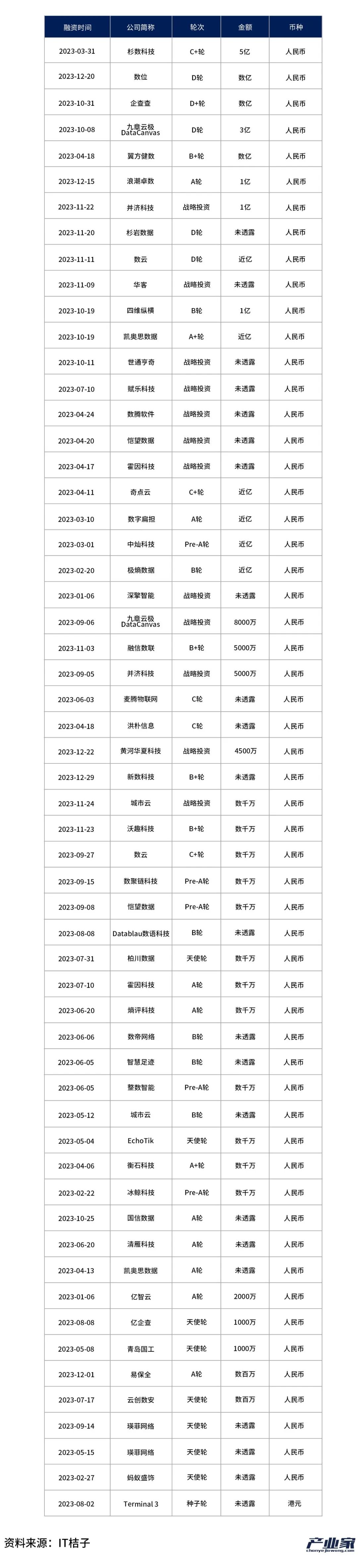 另一方面,数据的价值在2023年得到了前所未有的重视,然而实际的融资金额却相对较低。这同样可能是因为数据价值的提升主要体现在技术研发和应用层面,而这一领域的创新和突破需要较长时间和较高成本。这也反映出资本市场对于数据价值投资的理性思考,资本更加注重投资的可持续性和回报的稳定性。