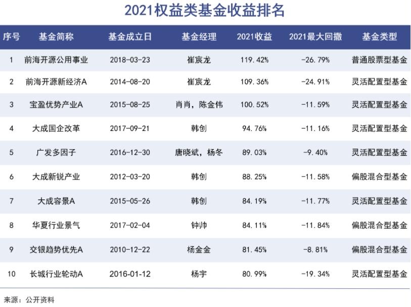 风格切换,基金经理的排位随之切换。前海开源基金的崔宸龙异军突起,因重仓锂电、光伏等新能源标的,其狂揽2021年股混双料冠军,个人的基金管理总规模最高突破400亿关口。