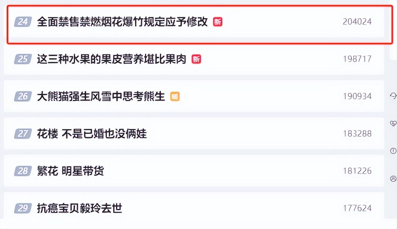 该消息一经披露,便引发各界强烈反响,并迅速登顶各大社交平台热搜。如在微博上,该条热搜一直从去年12月26日持续到12月29日,可见热度之高。体察网友的呼声之后,很多地方政策已经开始“松绑”。据澎湃新闻报道:原先全域禁止燃放烟花爆竹的山东省济南市章丘区,松绑了“禁燃令”。另外在数月前,在广州市人大常委会备案审查工作中,广州市一些区制定的全面禁止燃放烟花爆竹规范性文件已被纠正,将全域“一刀切”禁止燃放烟花爆竹修改为划定禁止、限制燃放烟花爆竹区域。