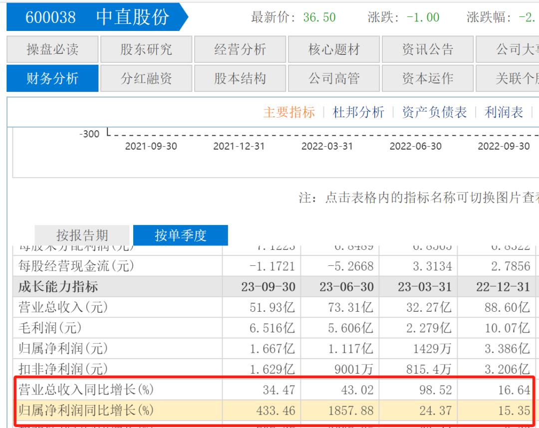 根据财报对比,在13家半年净利润过亿的企业中中直股份的业绩增长最为迅猛。2023年上半年中直股份营收105.6亿元,同比增长56.38%;净利润1.26亿元,同比增长632.48%。在2023年第三季度,中直股份营收51.93亿元,同比增长34.47%;净利润1.667亿元,同比增长433.46%。半年净利润增幅和单季度净利润增幅均超过400%。