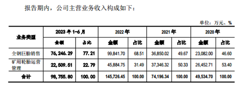 从业务上看,海安橡胶主要拥有全钢巨胎销售和矿用轮胎运营管理,具体情况如下: