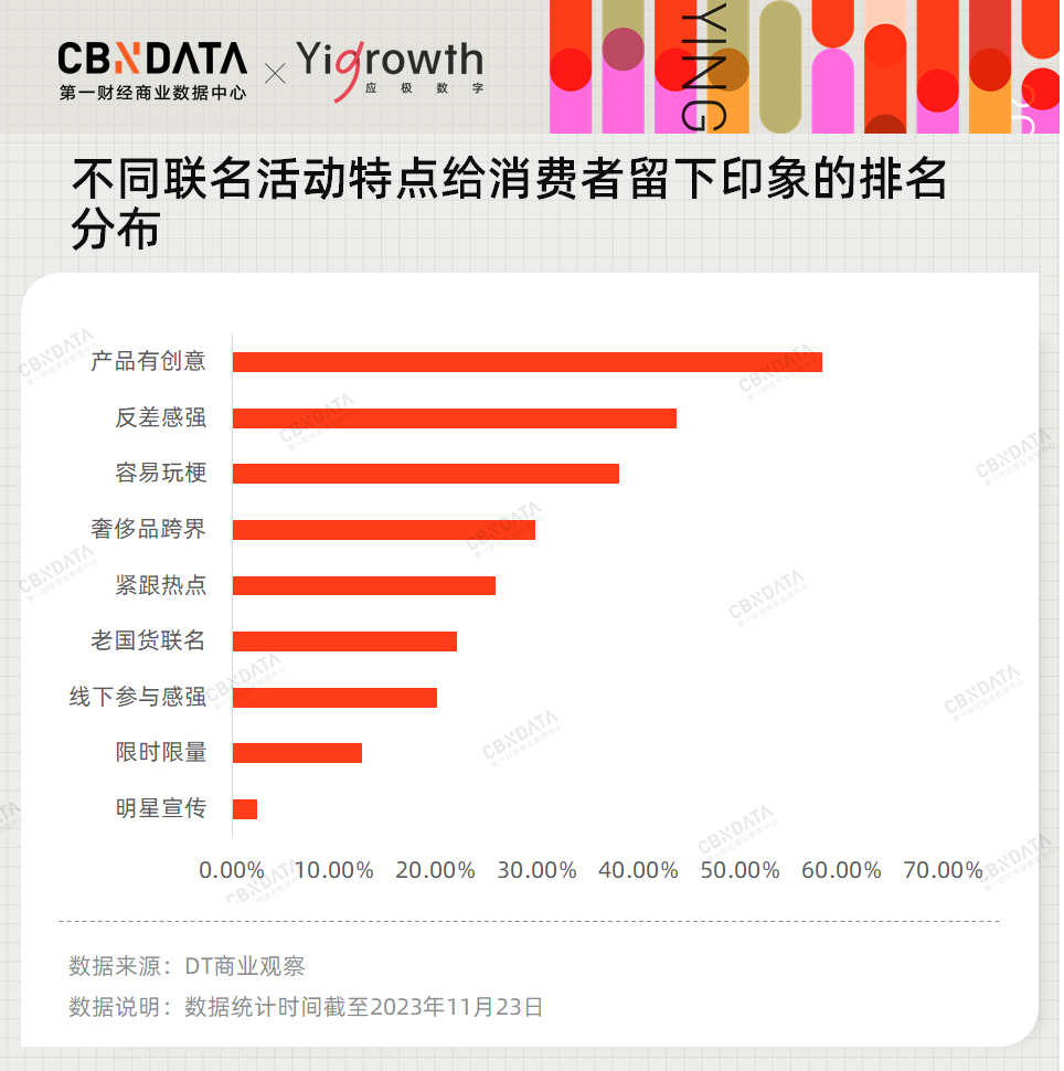 其次,产品是增长基础,好内容搭配好产品才能长久。联名产品其实是“产品即营销”的具象表现,既在产品层面有创新,也兼具一定话题度。在如今,有创意的联名产品更是成为联名活动留下深刻印象的主要因素,58%的消费者对于产品创意颇为看重。正因为有好产品,才能使得有机附着在产品体系上的内容才不至于成为“空中楼阁”。“从感知、到喜爱、再到消费、然后到复购,消费者的整个消费行为其实都由品牌方不断打造的沉浸体验,而打造这种体验的本质就是好产品与好内容”,李早说到。她认为,在产品与内容双管齐下时,品牌才能最大实现营销的价值。