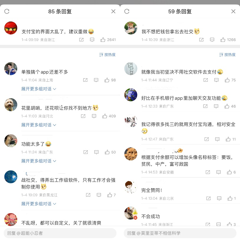用户对支付宝再战社交的评价