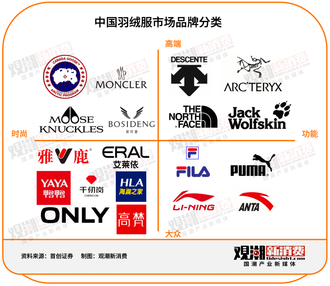经过50余年更迭,羽绒服市场如今参与者众多,包括传统国货品牌、海外高端品牌、运动品牌、快时尚品牌等,品牌分层成为羽绒服市场最明显的趋势之一。