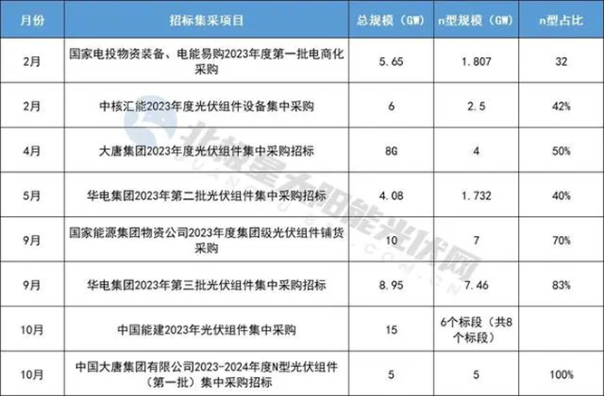 但今年以来,市场对旧式、低效率的PERC产品的需求日渐萎缩,下游电站招标活动则表达出市场新趋势:N型招标占比快速提升,N型光伏组件技术正在逐步取代P型技术,转换步伐明显加快。