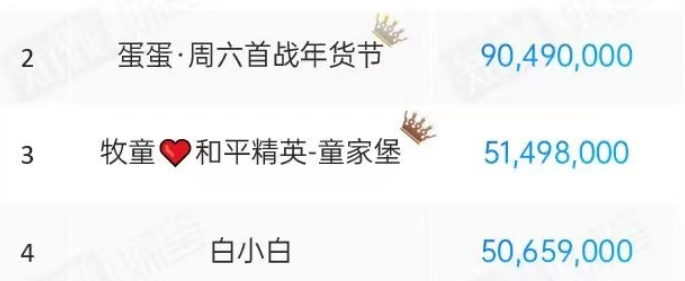 这两位是全网唯2的两个5000万粉丝量级的游戏主播,更放大一点是4000万以上,也只有这两位。