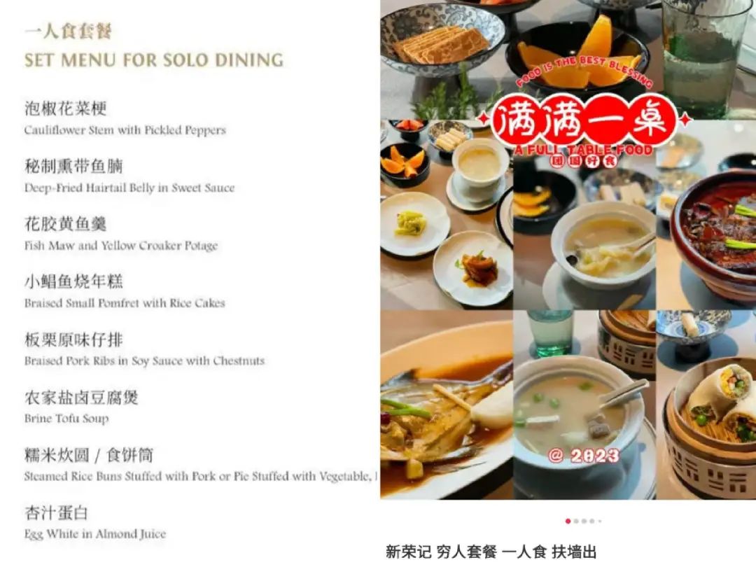 甚至连高端餐饮新荣记,都上新了“一人食套餐”。