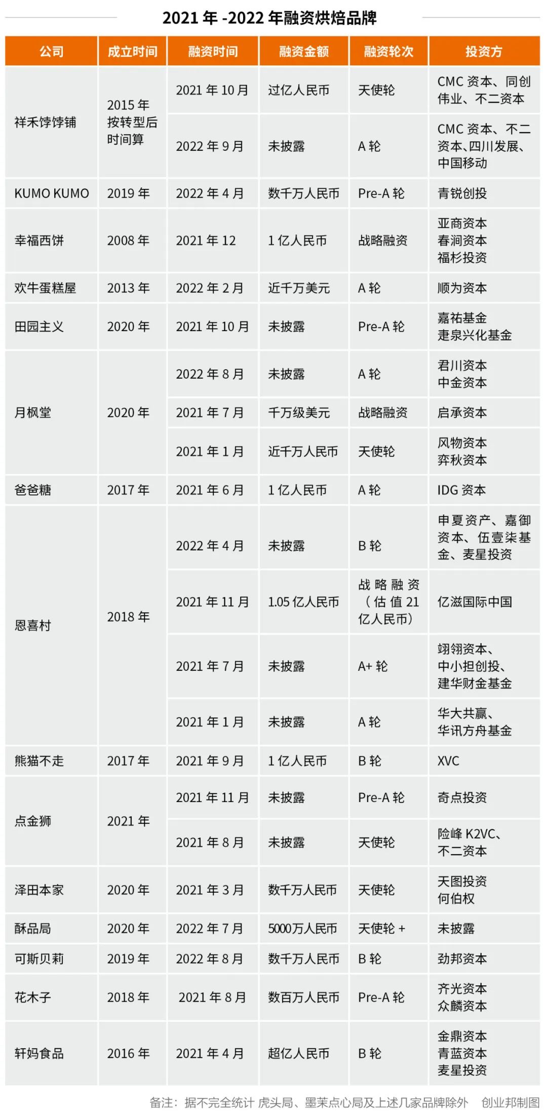 除了红杉中国、纪源资本等老面孔外,根据已披露的信息,去年一年,在烘焙赛道上出手的投资机构还有水滴资产、百联挚高资本、龙柏资本、麟阁创投、国弘资本等。