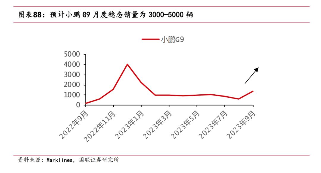 小鹏G9月度销量一度维持在1000辆左右,图/国联证券
