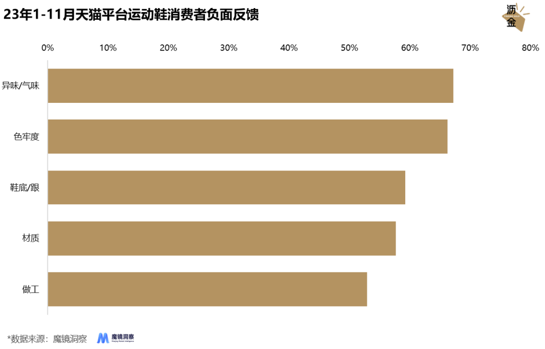 从消费者反馈维度的负面反馈来看,异味重、掉色、鞋底硬是引发消费者不满意的主要因素,品牌可着重优化产品的材质软硬和耐用性、细节做工。