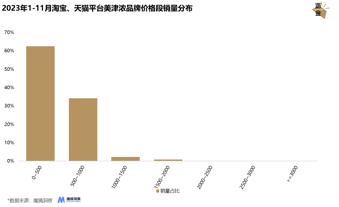 23年1-11月淘宝、天猫平台美津浓品牌价格段销量分布