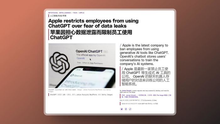 5月19日:苹果公司禁止其员工使用ChatGPT。