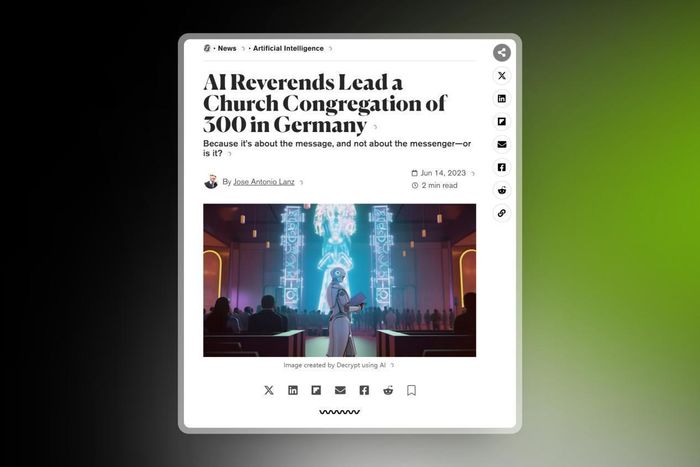 6月13日:德国一座教堂举行了300多人参与的AI宗教服务。