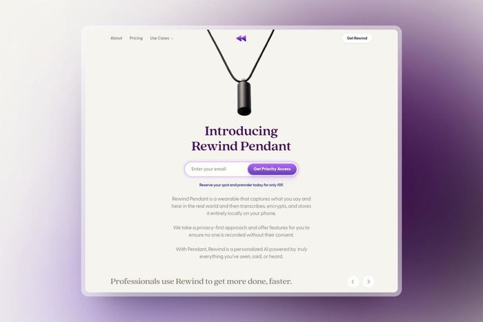 10月3日:Rewind推出Rewind Pendant,这是一款可捕捉现实世界对话的可穿戴设备。