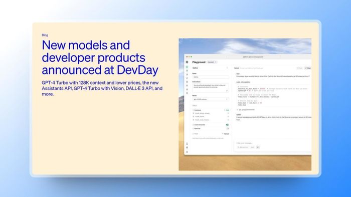 11月7日:OpenAI在DevDay上展示了GPT Builder、GPT-4 Turbo、Assistants API等。