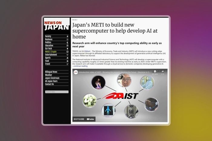 7月26日:日本经济产业省宣布计划开发AI超级计算机。