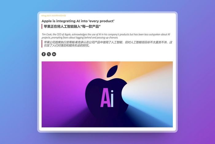 8月7日:苹果CEO蒂姆·库克表示,公司正在将AI技术融入所有产品中。