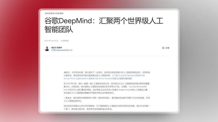 一路走来,我们很幸运地拥有两个世界一流的研究团队,通过基础性突破引领整个行业向前发展,开创了AI的新时代。现在的进步速度比以往任何时候都快。为了确保通用AI的大胆和负责任地发展,我们正在创建一个部门,帮助我们更安全、更负责任地构建更强大的系统。