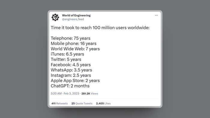 在2022年11月30日,OpenAI推出了一款创新的AI互动式问答平台ChatGPT,这个平台允许用户提出问题并即时获得反馈,仿佛与另一个人进行对话。它迅速引起了公众的广泛关注,在发布后的五天内就吸引了超过一百万用户。根据瑞银集团于2023年1月发布的报告,短短两个月内,该平台的月活跃用户数已经超过了一亿,创纪录速度超越TikTok、Instagram。