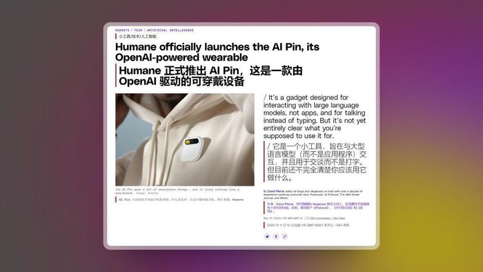 AI Pin是一款可穿戴设备,通过语音、手势和内置投影仪进行交互,连接到AI模型(如GPT-4)提供通信、信息查询和翻译等功能,通过Cosmos操作系统自动处理用户请求,无需传统应用管理。