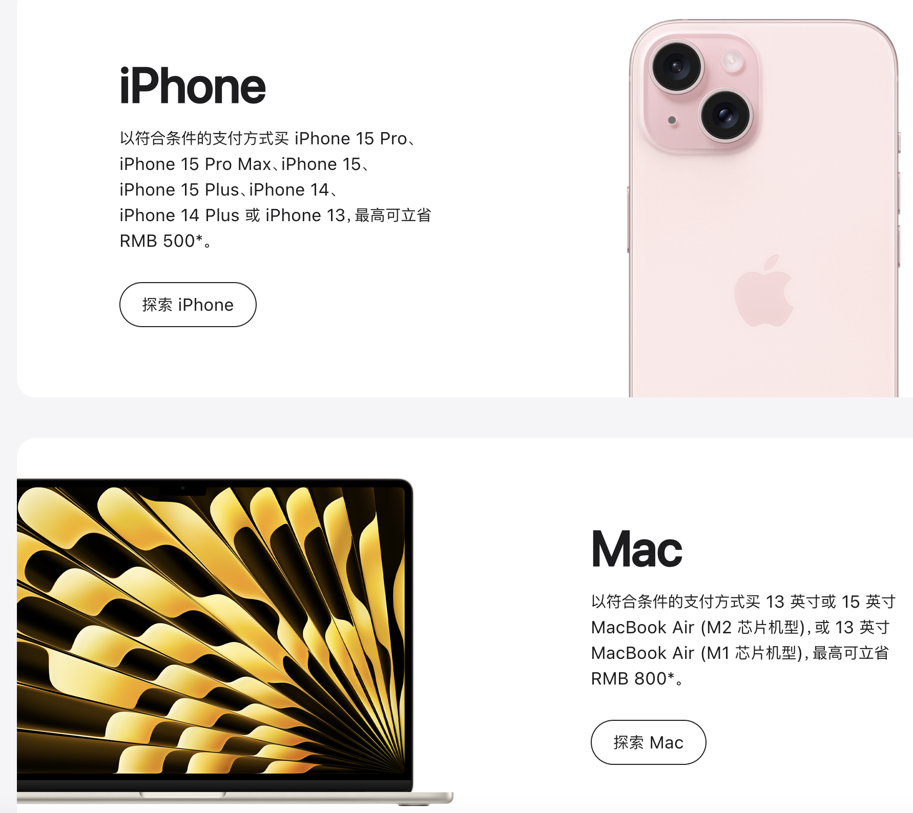 但总的来说,在最关键的优惠金额方面,苹果这次的官方促销力度,显得没有太大的诚意。只要在其他电商平台上逛过的人,估计没有什么理由在苹果官网或线下Apple Store入手那些产品。