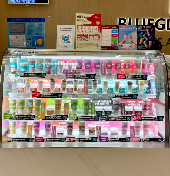 另一方面,现制酸奶却如日中天。2023年,茉酸奶四次登上微博热搜、获得君乐宝战略投资。单杯40元左右的Blueglass近一年半的时间内增开了87家门店,是过去10年开店数量的两倍。