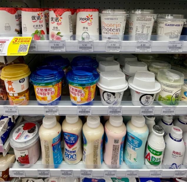 超市预包装酸奶货架 图片来源:Zhifei拍摄