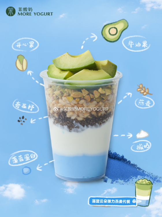 茉酸奶藻蓝云朵弹力燕麦代餐 图片来源:茉酸奶微博