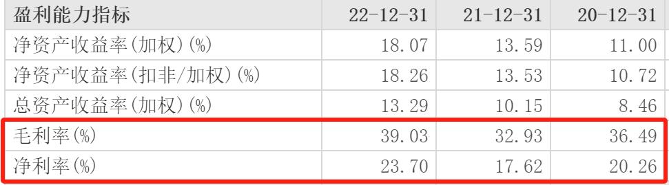 中国神华2022年净利润的大幅提升来自毛利率和净利率的大幅提升。 2022年的毛利率为39.03%,相比上一年的32.93%提升了6.1个百分点,相比2020年的36.49%也有2.54个百分点的提升。 2022年,中国神华的净利率为23.70%,相比上一年的17.62%提升6.08个百分点,相比2020年的20.26%提升3.44个百分点。 其中毛利率恢复至疫情前的水平,而净利率则为近十年新高。