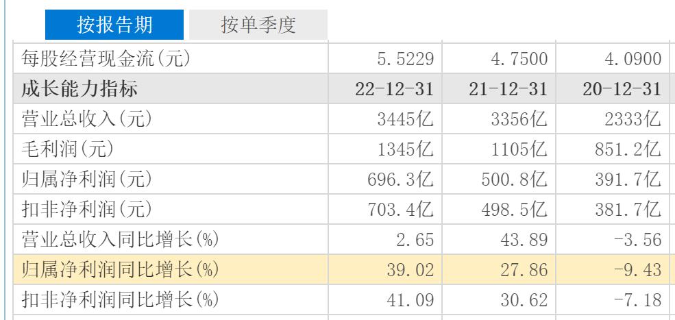据财报显示,2022年中国神华总营收3445亿元,同比上一年的3356亿元增长了2.65%,归母净利润为696.3亿元,同比上一年的500.8亿元增长了39.02%。此前两年的总营收分别为2333亿元和3356亿元,增幅分别为-3.56%和43.89%,尤其2021年总营收增长了1023亿元。此前两年净利润分别为391.7亿元和500.8亿元,增幅分别为-9.43%和27.86%,2021年净利润同样增长超百亿元。2022年营收增幅相比2021年有较大下滑,但净利润却实现39.02%的增长,净利润增幅远超营收增幅。