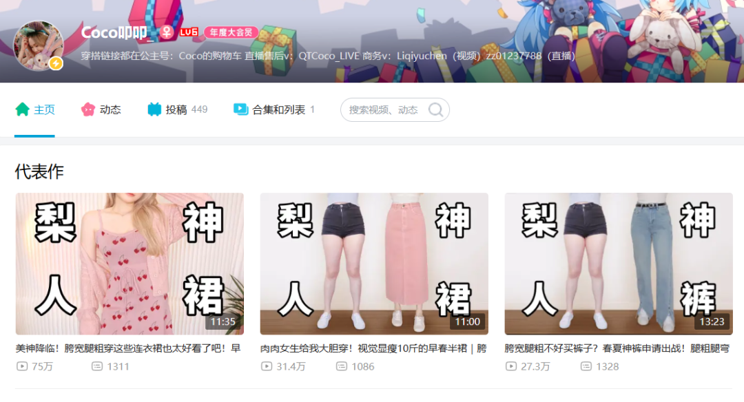 此外,不到50万粉丝的B站穿搭UP主@Coco叩叩_实现了单场直播GMV超450万元的成绩。