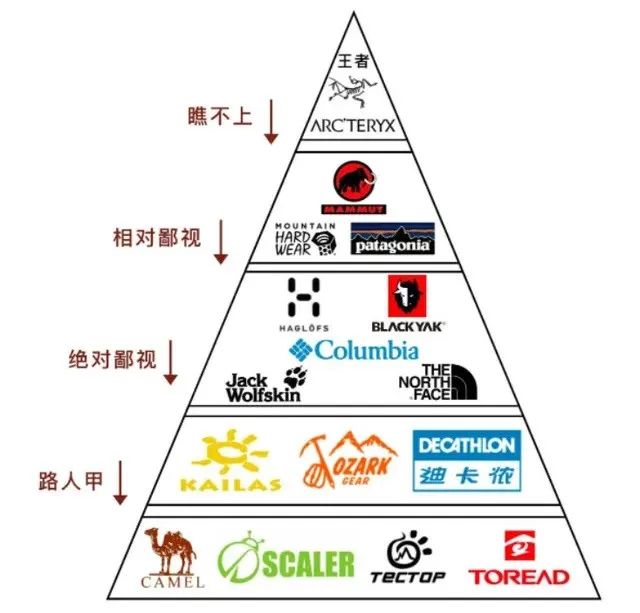 坦率来说,鄙视链虽然是一件非常下头的事,但却完美符合人性。不管任何领域,一定要人为地分出三六九等,然后通过上对下鄙视的方式,从中寻求心理上的快感。套回到户外用品来说,穿始祖鸟的中年人,当然会不自觉地对北面、哥伦比亚等牌子产生优越感,对穿迪卡侬的“众屌丝”心怀同情,这种由品牌带来的一系列心理上的优越感正在刺激中年人源源不断地为始祖鸟买单。