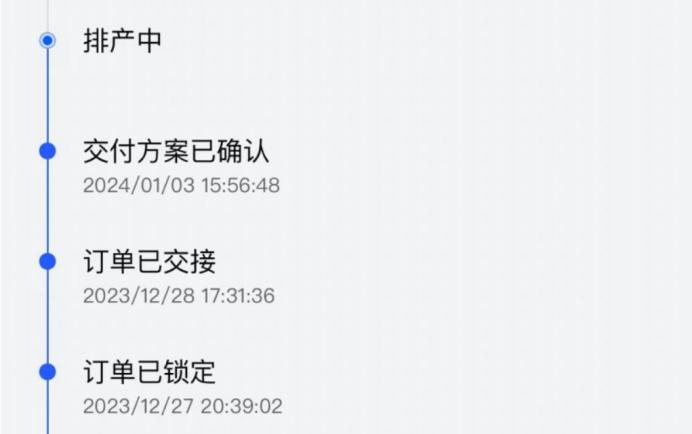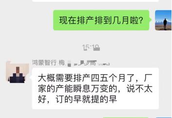 汽车之家论坛上,1月3日就有车主晒出已经排产的订单。这意味着最后面的订单,提车要等到5月、6月份去了。