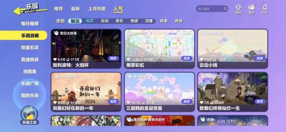 彭莉亦坦言道,自己在《蛋仔派对》里最喜欢,且耗费最长时间的就是乐园模式。“从多人对战到剧情解谜,再到单纯的游览观光,甚至是模拟人生,乐园什么都有。相比之下,《元梦之星》的UGC模式‘星世界’就要单调许多,只有简单的跑酷、射击等玩法。”