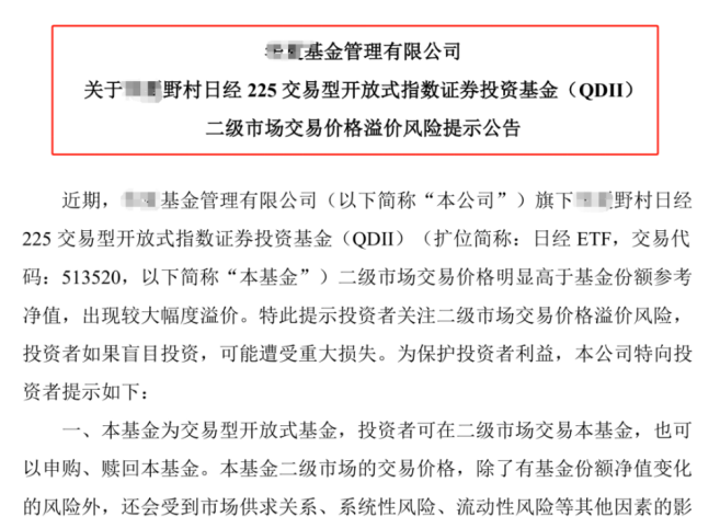 今年,华夏基金已经连续三次发布了溢价风险提示,提醒投资者,如果盲目投资,可能遭受重大损失。