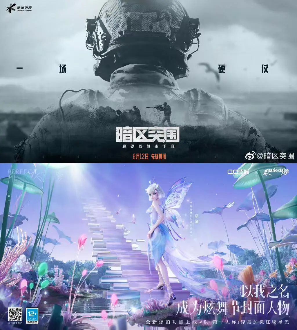 在《王者荣耀》官宣和抖音合作前,腾讯游戏已经试水两年:2021年陆续投放了一些广告;2022年启动了更大体量的合作,比如《暗区突围》合作包括抖音平台在内的百位博主、 “腾讯长公主”、《QQ炫舞》系列虚拟代言人星瞳空降抖音直播间、加盟平台围绕虚拟直播打造的“繁星计划”。![]()