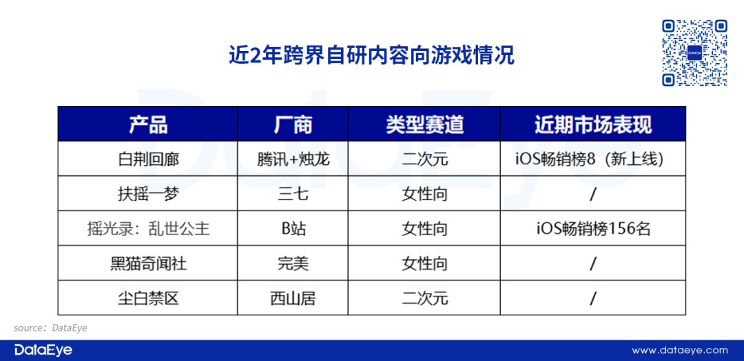 以小见大,根据DataEye研究院的不完全统计,近来市场上出现了越来越多“跨界”自研内容向游戏,如下图所示: