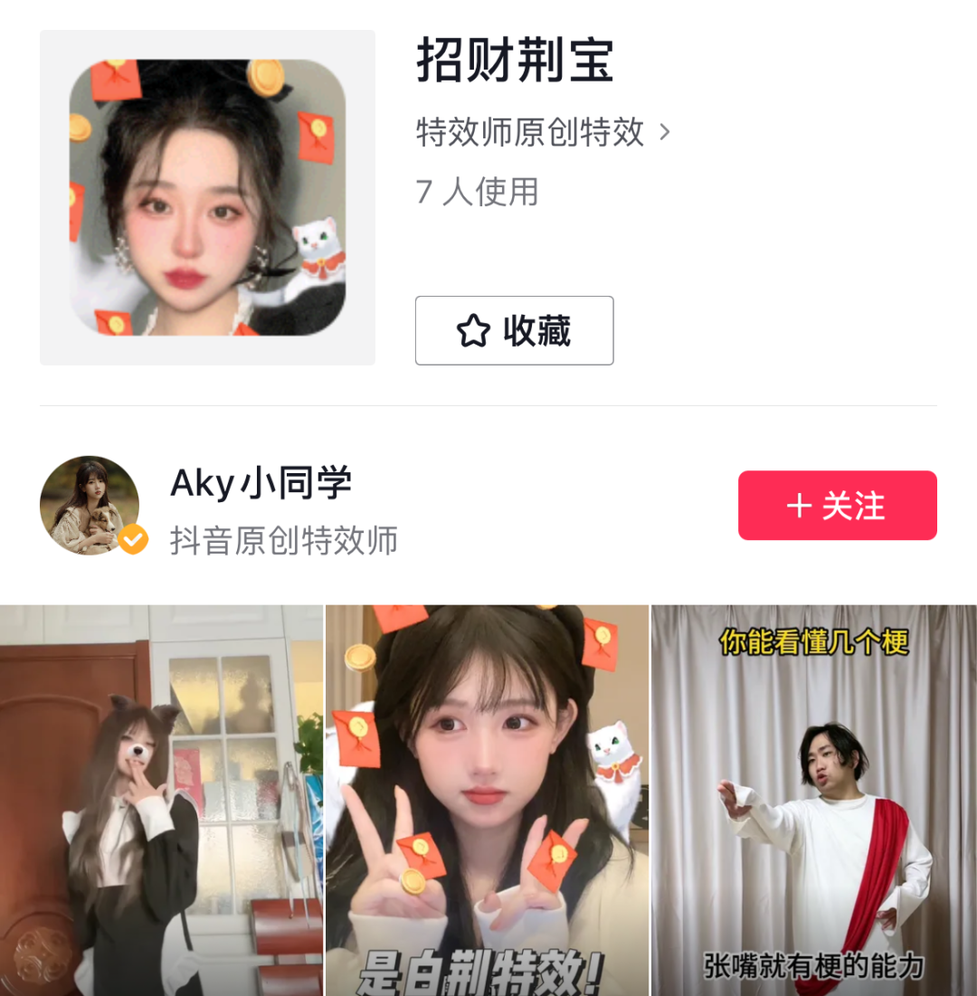同时在B站、抖音等平台发布创作者激励计划。项目组以百万现金和游戏道具激励创作者进行UGC内容创作,其中在抖音还定制了相机特效“招财荆宝”,期望吸引除了游戏垂类达人之外的泛用户参与内容创作。