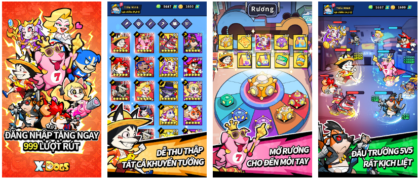 值得一说的是,《菇勇者传说》之前的2023年9月,4399就曾在东南亚小规模上线了一款名为《X-Dogs: Siêu Khuyển》(以下简称《X-Dogs》)的画风清奇的休闲放置卡牌,由于游戏内杂糅了很多梗文化加上鬼畜视频的宣推,《X-Dogs》首月双端流水达到了324万。