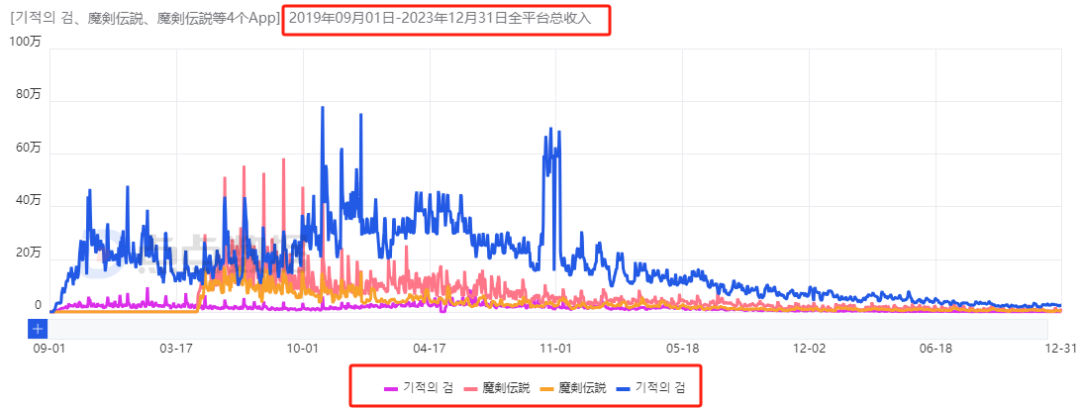 《奇迹之剑》日韩市场2019年至2023年流水变化
