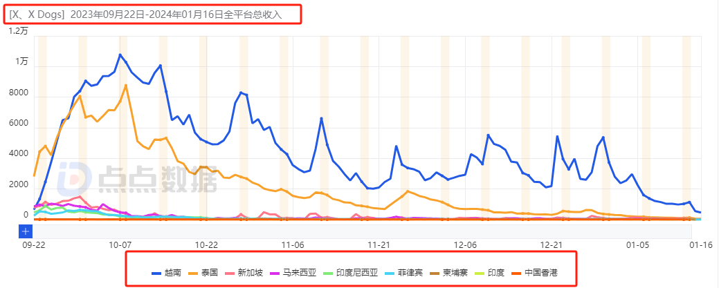 但随着宣推的减少,截至目前,其双端总流水预估在620万左右,越南及泰国分别贡献了380万、180万,位列TOP2。