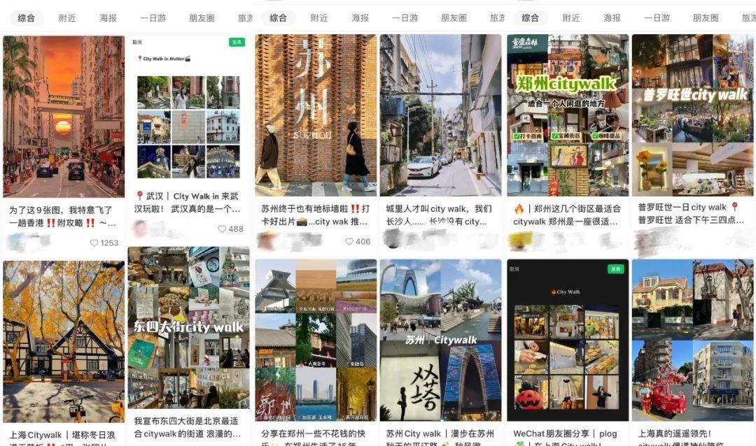 据小红书《2023年度生活趋势观察报告》显示,2023年citywalk相关话题在小红书浏览量超过21亿次,搜索同比增长140倍,有超过370万篇笔记分享了相关故事。在短短的一年内,citywalk的范围不断扩大,从北上广等一线城市向二三线城市扩展,餐饮、购物、住宿等旅游产业同步迎来新机遇,成为城市旅游产业的重要部分。北京、山东等地甚至已将其列入促进文化旅游休闲的行动方案,上海还专门开设了公交巴士组成的citywalk路线。