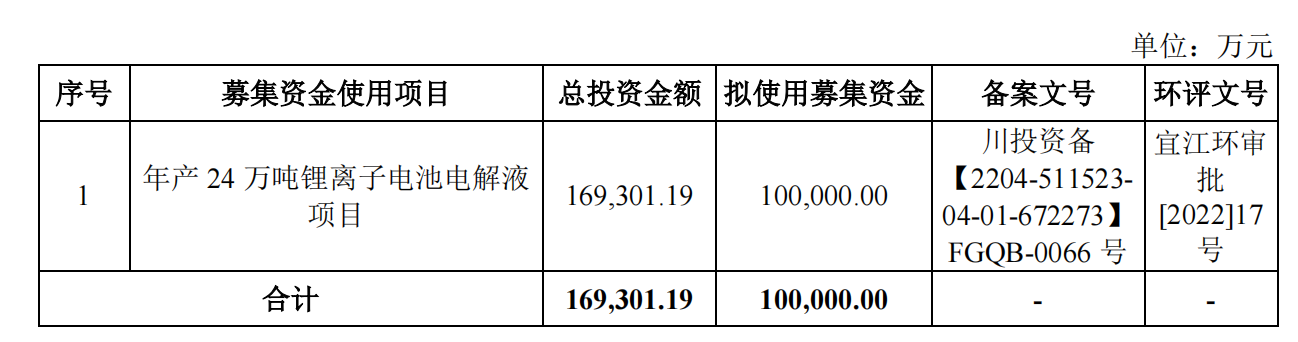 然而在此背景下,昆仑新材还要继续砸钱扩产能。本次IPO公司拟募集10亿元用于年产24万吨锂离子电池电解液项目,项目总投资额为16.93亿。![]()