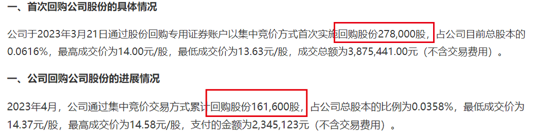 实际上,劲仔食品也多次进行回购,以增强投资者信心。例如:2023年3月21日,公司回购27.8万股;2023年4月,公司累计回购股份16.16万股。