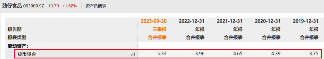 一边是高额分红,一边是起伏不定的经营现金流,两相夹击之下,劲仔食品的货币资金在2019年至2022年基本处于原地踏步的状态,直到2023年9月才有较为明显的提升。