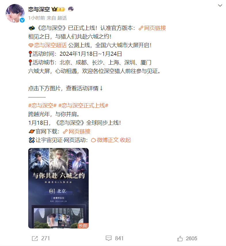 《恋与深空》在社媒营销上高举高打,但也树大招风。