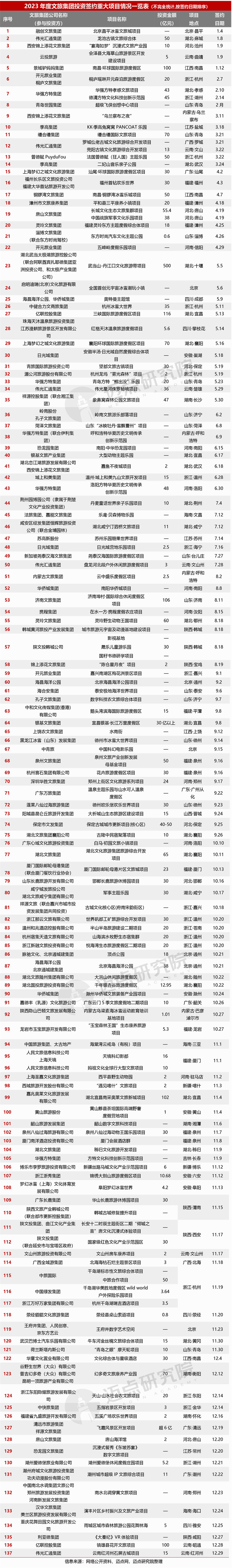 1. 文旅集团投资签约项目