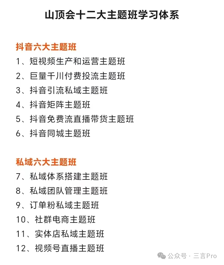 包括短视频引流、运营、私域管理等主题班。