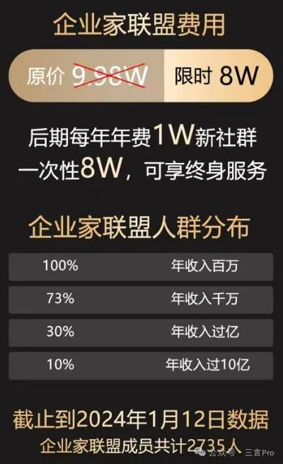 但如果没达到一定段位,花几万块挤进那个圈子后,既不能给别人提供价值,也收割不了那些老板,只能去学习别人,而别人又不一定愿意教,这个时候进私董会就可能会觉得自己被“割韭菜”了。